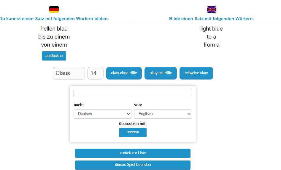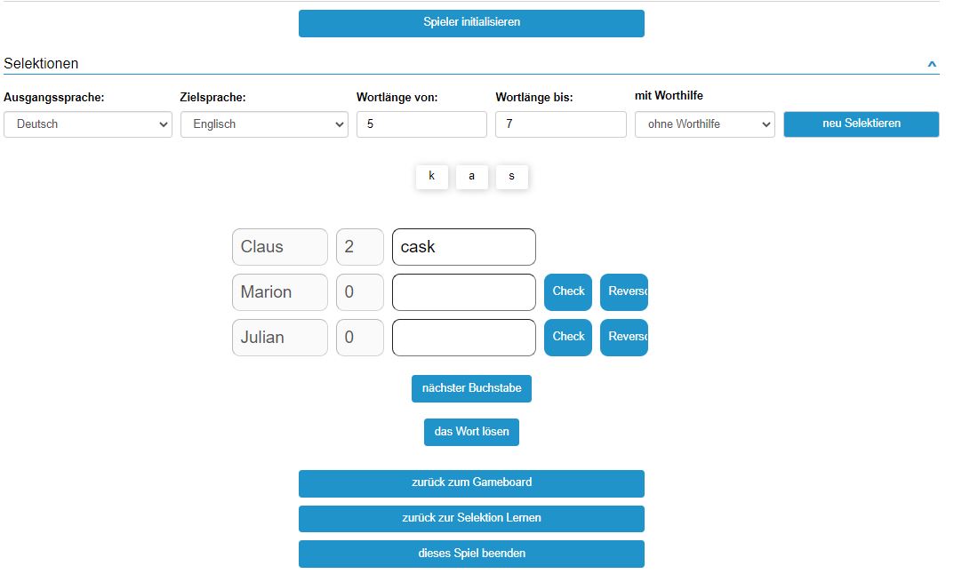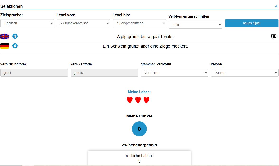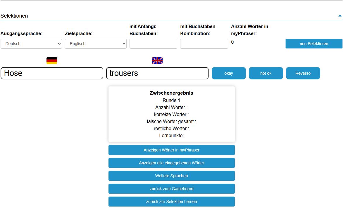 Von hier kannst Du alle Spiele in myPhraser aufrufen. Damit Du nicht gleich von den vielen Spielmöglichkeiten erschlagen wirst, führen wir Dich Schritt für Schritt an die einzelnen Spiele heran.