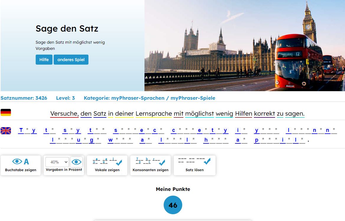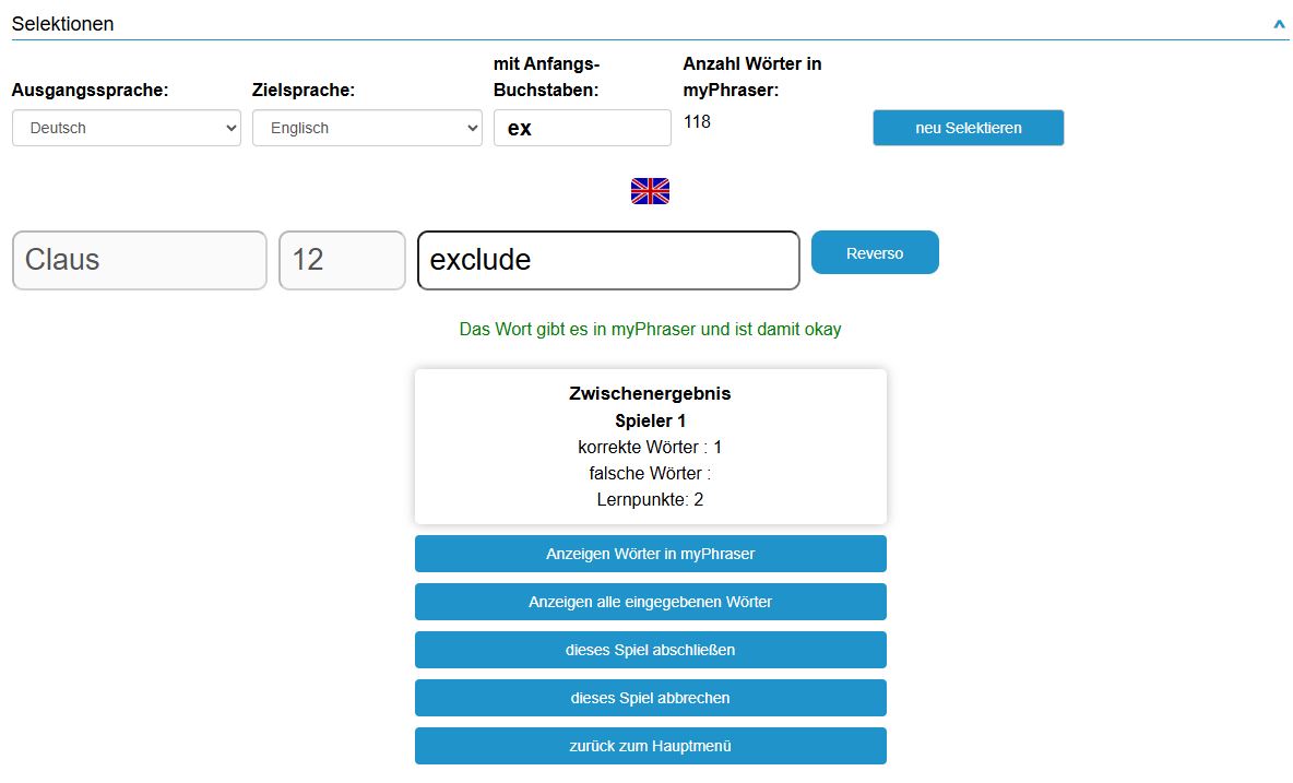 Das Freischalten der weiteren Spiele geht nur mit einer Registrierung bei myPhraser. Es lohnt sich!